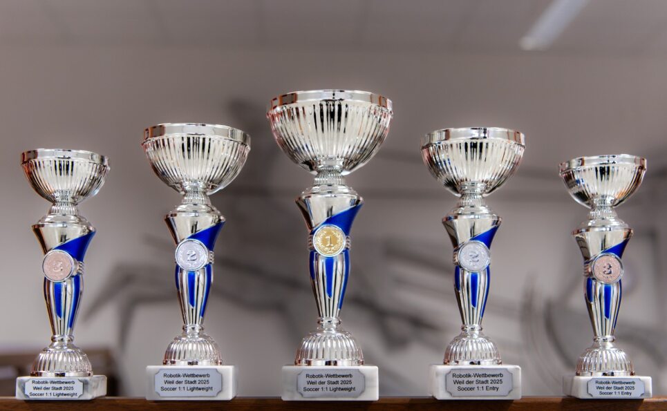 Am vergangenen Samstag, dem 15.11., startete die Roboter-AG des Gymnasiums im Bildungszentrum erfolgreich in die neue Wettkampfsaison. In diesem Jahr war die Vorbereitungszeit besonders kurz, da das Turnier erstmals schon im November und nicht wie sonst erst Anfang Dezember stattfindet. Am Johannes-Kepler-Gymnasium in Weil der Stadt traten vier Schulen mit insgesamt 43 Teams und rund 110 Schülerinnen und Schülern gegeneinander an. Gespielt wurde in den Ligen Rescue Line und Rescue Line Entry, Soccer Entry und Soccer Leichtgewicht 1 gegen 1.