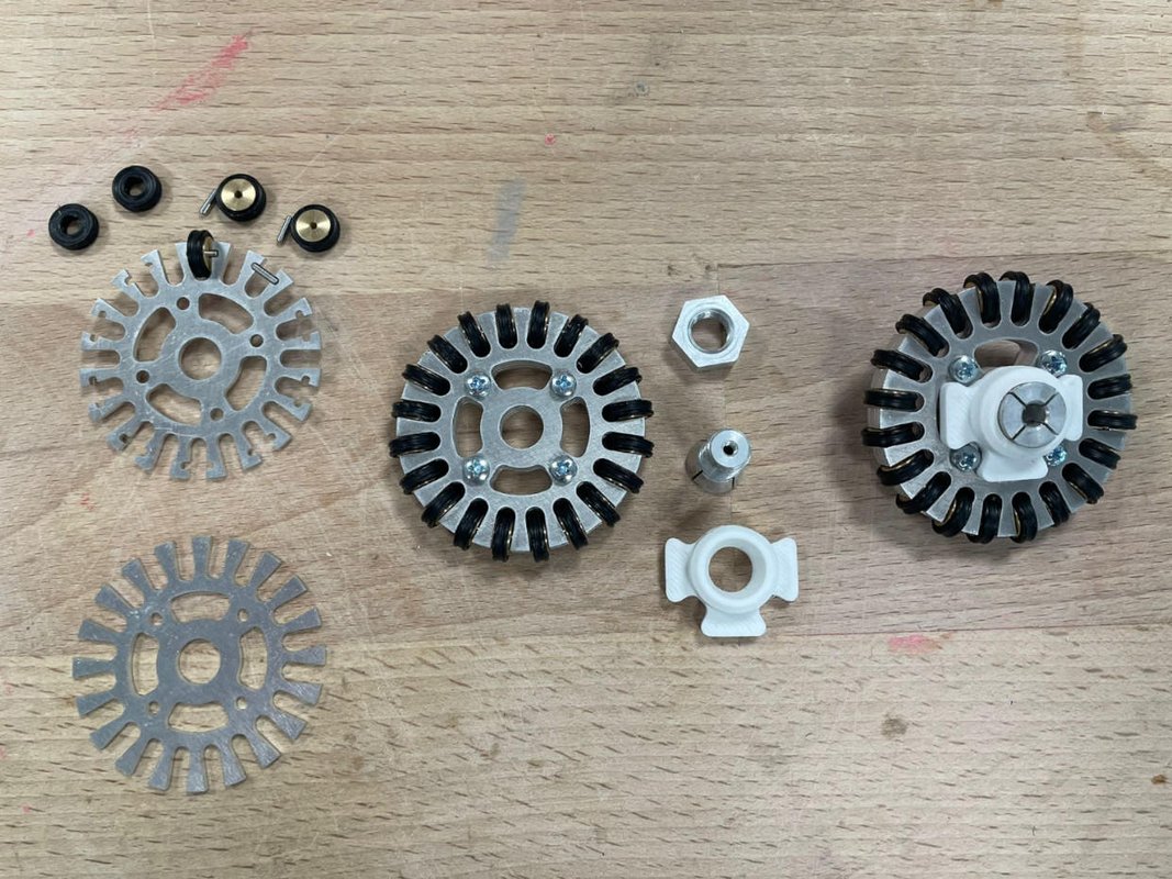 Dank unserem Sponsor, der Homburger GmbH, die uns die Felgen aus Aluminium gefertigt hat, konnten unsere ersten eigenen Omniwheels fertiggestellt werden. Die Bodensee-Koalas werden sie beim Qualifikationsturnier im Februar unter realen Turnierbedingungen auf Herz und Nieren testen. Bei erfolgreichem Test werden wir nach und nach auch alle anderen Soccer-Selbstbau-Teams damit ausrüsten!