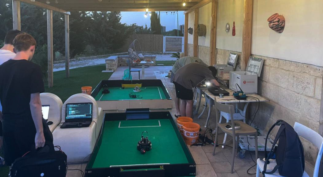 Am Abend stand wieder die Technik im Mittelpunkt: ausgiebige Tests, Freundschaftsspiele und zahlreiche Verbesserungen an unseren Robotern, um für die RoboCup-EM 2025 bestens gerüstet zu sein.